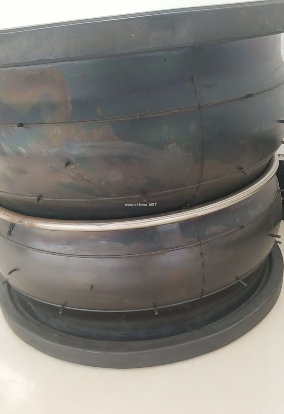 本公司生產(chǎn)的雙球可曲撓橡膠接頭產(chǎn)品,主要通過(guò)延長(zhǎng)橡膠接頭支承模具,實(shí)現(xiàn)橡膠接頭的延長(zhǎng),但在生產(chǎn)過(guò)程中,由于橡膠膨脹節(jié)的結(jié)構(gòu)影響,會(huì)造成雙球可曲撓橡膠接頭在生產(chǎn)過(guò)程中,相鄰兩橡膠膨脹節(jié)之間的膠量不足,導(dǎo)致橡膠膨脹節(jié)直接壁厚較薄,造成承壓能力下降,因此本公司特針對(duì)這種情況,在雙球可曲撓橡膠接頭處,添加金屬加強(qiáng)環(huán),有效地防止橡膠膨脹節(jié)在高壓環(huán)境下的破裂,同時(shí)也解決了雙球橡膠接頭承壓能力差的缺點(diǎn)。由于橡膠接頭的使用環(huán)境和結(jié)構(gòu)的限制,在使用中發(fā)現(xiàn)橡膠接頭的兩個(gè)伸縮接頭之間有一個(gè)金屬環(huán),套在橡膠伸縮接頭上。很多用戶對(duì)這部分的功能不是很了解,經(jīng)常擔(dān)心橡膠接頭因?yàn)榻饘侪h(huán)而失去補(bǔ)償性能。