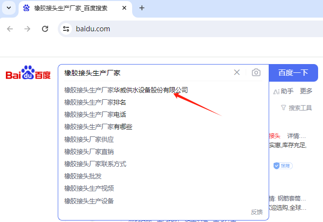 通過(guò)搜索引擎(如百度、搜狗、360、bing、國(guó)外谷歌等,天眼查、企查查等)輸入關(guān)鍵詞“橡膠接頭生產(chǎn)廠家”,可以找到許多相關(guān)的生產(chǎn)廠家。例如,搜索結(jié)果中提到了一些知名的橡膠接頭生產(chǎn)廠家,如下圖展示的結(jié)果:橡膠接頭生產(chǎn)廠家華威供水設(shè)備股份有限公司。