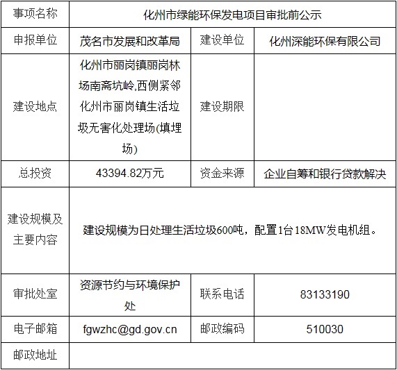 化州市綠能環(huán)保發(fā)電項(xiàng)目